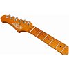Гриф и накладка на гриф выполнены из печеного клена (roasted maple). При такой обработке поры дерева максимально сжимаются и в процессе использования вода уже не будет выходить, ваша накладка не сожмется и лады не повылазят вне зависимости от влажности и смены температуры. Плюс такое дерево выглядит очень красиво.