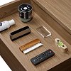 от 6 049 ₽/мес Стеллаж для виниловых пластинок Radiotehnika Rondo 302 Walnut - Предусмотрено три открытых секции для хранения виниловой коллекции и два выдвижных ящика для аксессуаров.