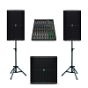 Звукоусилительный комплект MACKIE на базе 12" активной акустики MACKIE THUMP212 и активного сабвуфера THUMP115S. В комплект добавлены беспроводные вокальные микрофоны ROCKDALE PRO Stage 220 BK Vocal.